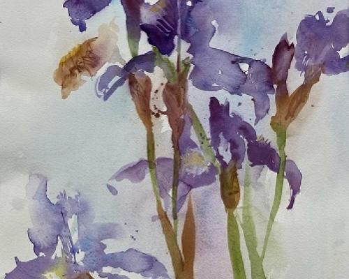 Iris Elegance £150.00 Archive: yes Sold: SOLD £150.00An original mixed media painting in a white mount. Approx size. Packing and postage at cost.
