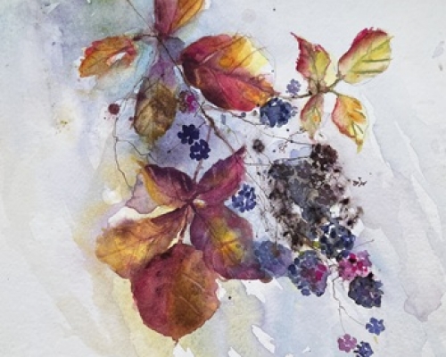 Autumn Hedgerow £135.00 Latest: yes Portfolio: yes £135.00an original watercolour in a white mount and a white frame Approx size 36 cm w x 35 cm h