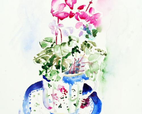 Cyclamen £125.00 Archive: yes Sold: SOLD £125.00Original mounted water colour painting in white mount. Approx size: 34 cm w x 41 h. Price is inclusive of postage and packing.