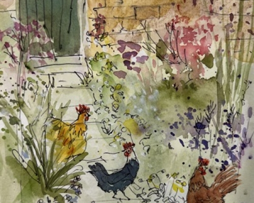 An original watercolour/ink painting on a white mount and a white frame