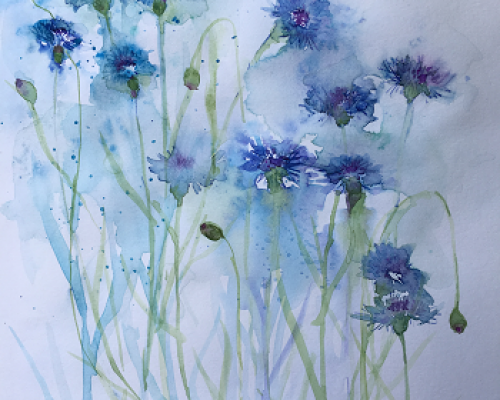 Meadow Cornflowers £125.00 Archive: yes Sold: SOLD £125.00An original watercolour with ink in a white mount. Approx. size 30 cm x 30 cm Price includes postage and packing