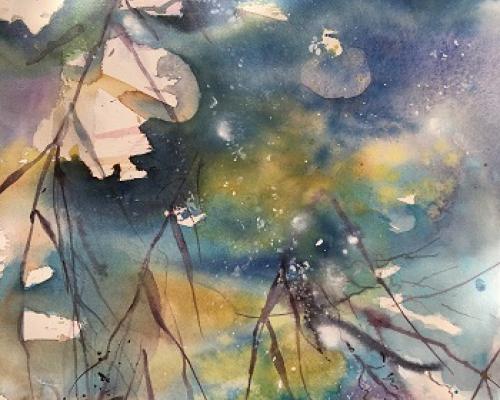 Reflections at Wicken Fen £250.00 Archive: yes Sold: SOLD £250.00An original watercolour/acrylic Ink painting in a white frame with a double white mount. Approx. size 53 cm w x 65 cm h. £20 for postage and packing