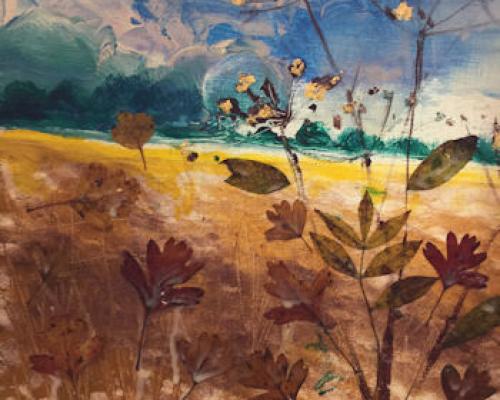 Across Autumn Fields £120.00 Archive: yes Sold: SOLD £120.00An original acrylic painting with collage on canvas. Price includes postage and packing.