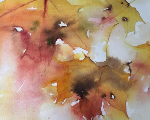 Drifting Leaves £185.00 Archive: yes Sold: SOLD £185.00An original watercolour in a white mount Approx size 39.5 cm w x 41.5 cm h £10 for postage and packing NOT AVAILABLE