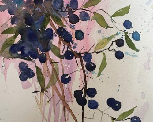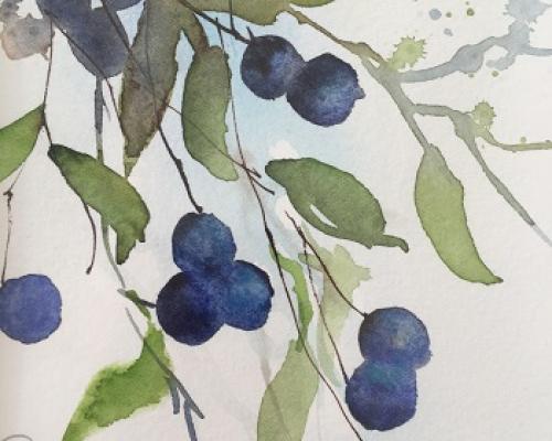 Sloes in Winter Light £50.00 Archive: yes Sold: SOLD £50.00An original watercolour in a single white mount Approx.size £10 for postage and packing