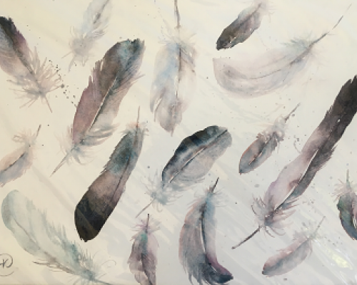 Drifting Feathers £125.00 Archive: yes Sold: SOLD £125.00An original watercolour in a white mount. Approx. size 49.5 cm w x 40 cm h Price includes postage and packing