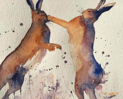 Boxing Clever £185.00 Archive: yes Sold: SOLD £185.00An original watercolour painting in a white mount and a white frame. Approx size 34 cm w x 45 cm h Postage and packing £20