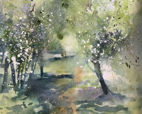 Walk from Little Wilbraham towards Quy £135.00 Sold: SOLD £135.00An original watercolour painting in a white frame with a single mount Approx size 36 cm x 36 cm £20 for postage and packing