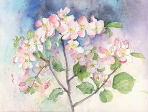 Blossom Time £175.00 Archive: yes Sold: SOLD £175.00Size: 38cm h x 48 cm w Original mounted watercolour painting in white mount.