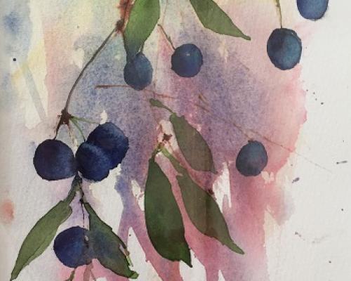 Sloes in Winter Light £50.00 Archive: yes Sold: SOLD £50.00An original watercolour in a single white mount Approx.size £10 for postage and packing