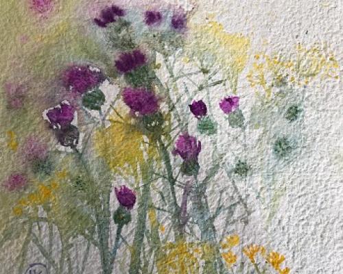 Thistles and Daisies £135.00 Archive: yes Sold: SOLD £135.00An original watercolour in a white mount Approx size Price includes postage and packing