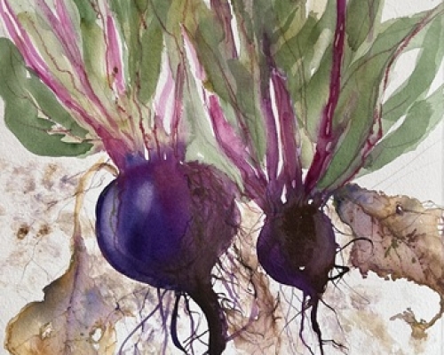 Beetroot £235.00 Latest: yes Portfolio: yes £235.00An original watercolour in a white mount and a white frame Approx size 45.5 cm w x 52.5 cm h
