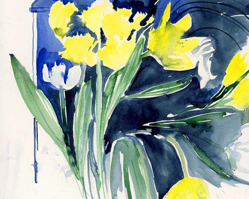 Original mounted water colour painting in white mount and white frame.