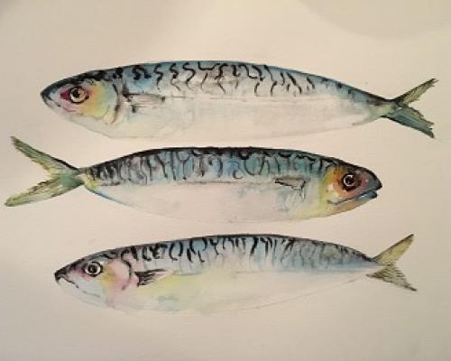 An original watercolour painting in a white frame with a single white mount