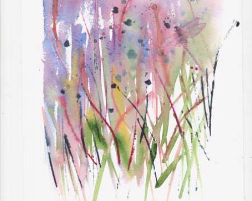 Dancing Dragonflies £125.00 Archive: yes Sold: SOLD £125.00Original mounted water colour painting in white mount. Approx size: 28cm w x 36 cm h. Price is inclusive of postage and packing.