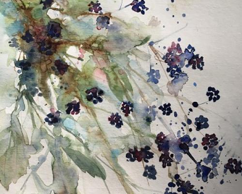 Blackberry Picking £85.00 Archive: yes Sold: SOLD £85.00An original watercolour painting in a white mount. 29.5x30 cm