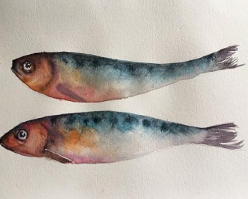 Two Little Fishes £135.00 Archive: yes £135.00An original watercolour painting in a white mount Approx size 38 cm w x 28 cm h Price includes postage and packing
