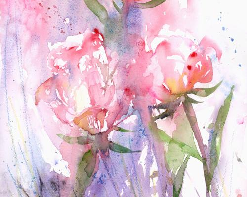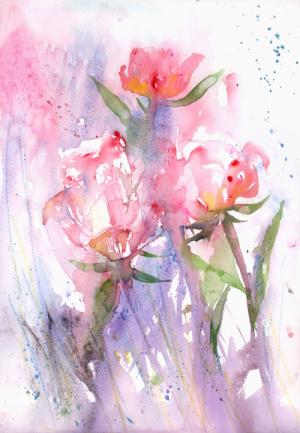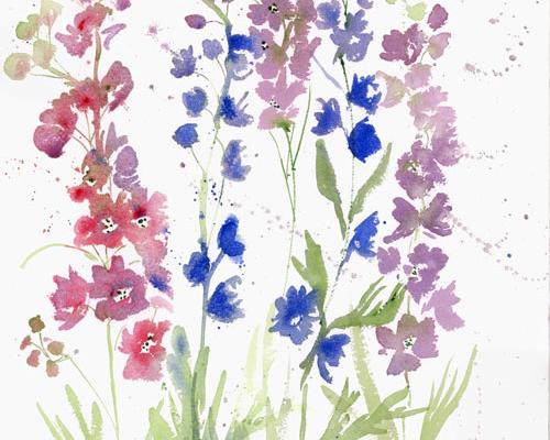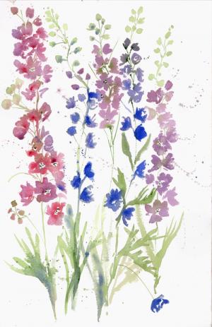 Sweetpeas in blue and white jug £125.00 Archive: yes Sold: SOLD £125.00Original watercolour painting in white mount Approx size 35 cm l x 32 cm w