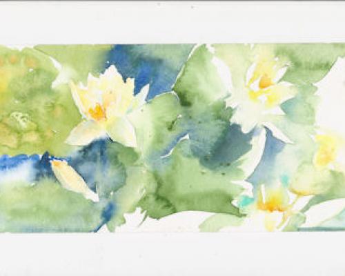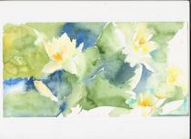 Waterlilies in Cambridge Botanic Garden £125.00 Archive: yes Sold: SOLD £125.00An original watercolour in a white mount. Approx. size 44 cm l x 29 cm w